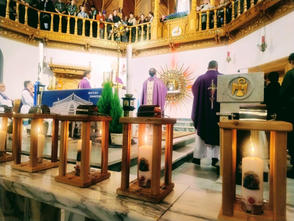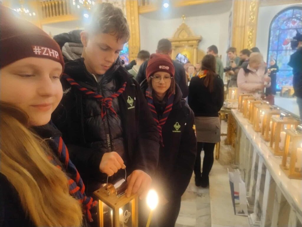Po aktywnościach i harcerskich wyzwaniach nadszedł najważniejszy moment – odebranie Betlejemskiego Światła Pokoju z rąk słowackich skautów podczas uroczystej mszy na Krzeptówkach.