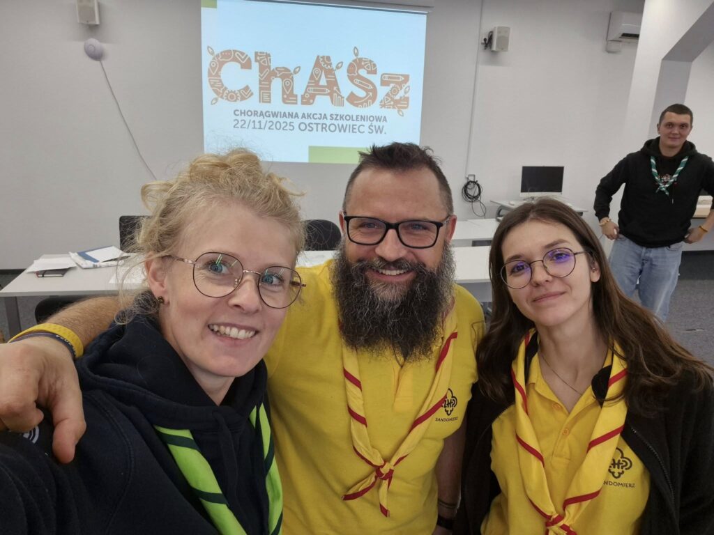 Druhny i Druhowie z Hufca ZHP Sandomierz – pwd. Piotr Statuch, pwd. Barbara Tomkiel, dh. Paulina Madej, dh. Kamil Konderak oraz hm. Paulina Grębowiec-Kowalska – uczestniczyli w Chorągwianej Akcji Szkoleniowej organizowanej przez Chorągiew Kielecką ZHP. Wydarzenie odbyło się w Ostrowieckim Browarze Kultury – miejscu, które łączy kreatywną przestrzeń z harcerską energią.